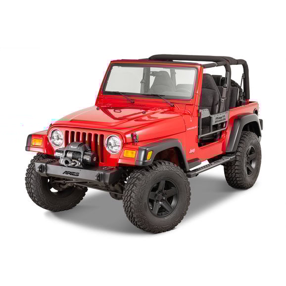 You can take on the trail with the steel Aries TrailCrusher Front Bumper. This bumper is built for recovery because both the integrated winch plate and the d-ring shackle mounts are rated for 9,500 lbs. Due to its narrow width, most types of winches are able to fit on this bumper. Use the factory mounting points for an easy no-drill installation.