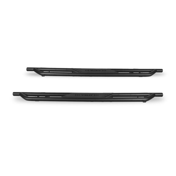 The Attica 4x4 Apex Series Rock Sliders for the Jeep Wrangler JL 2-Door are the ultimate upgrade for off-road enthusiasts. Constructed from high-strength steel, these rock sliders offer exceptional durability and protection against the toughest trail obstacles. Their sleek, textured black powder coat finish not only enhances the rugged look of your Jeep but also provides superior rust and corrosion resistance. Designed to maximize ground clearance, they allow you to navigate over rocks and debris with ease. With a straightforward bolt-on installation process, these rock sliders are a hassle-free addition that ensures your Jeep is ready for any adventure. Embrace the confidence and capability that comes with the Attica 4x4 Apex Series Rock Sliders.