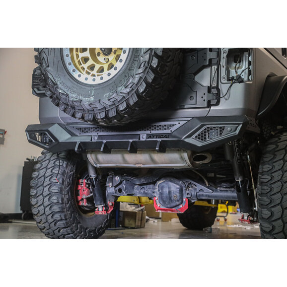 Introducing the Attica 4x4 Terra Series Rear Bumper for Jeep Wrangler JL, a must-have upgrade for off-road enthusiasts seeking enhanced durability and style. This rear bumper is crafted from heavy-duty 6-gauge steel, ensuring maximum protection against tough terrain and unexpected impacts. Its sleek, rugged design complements the Wrangler JL’s aggressive stance while offering superior functionality.