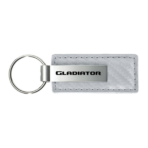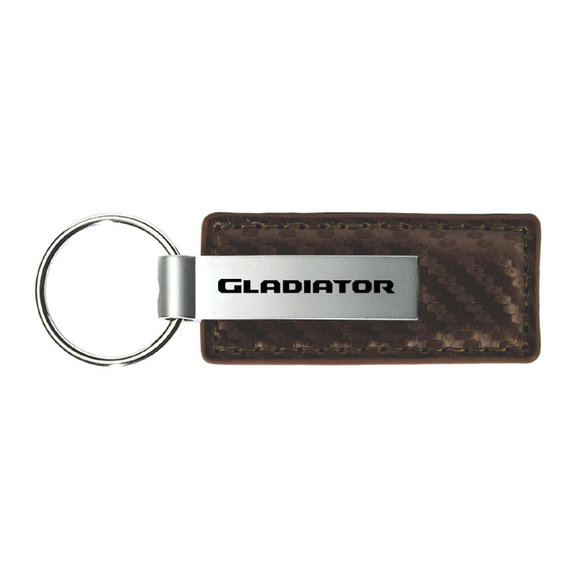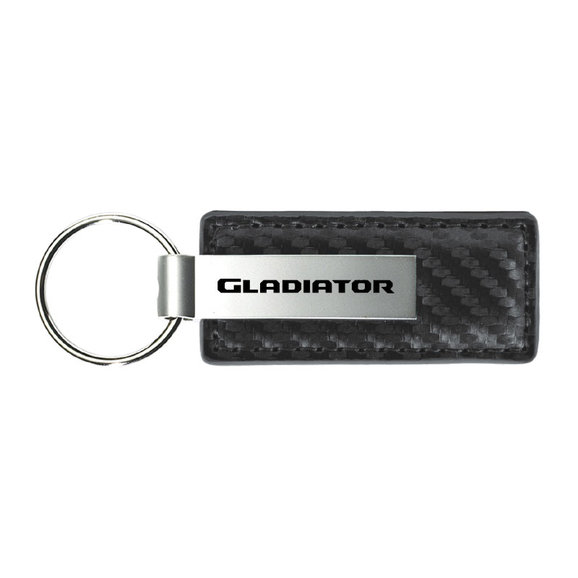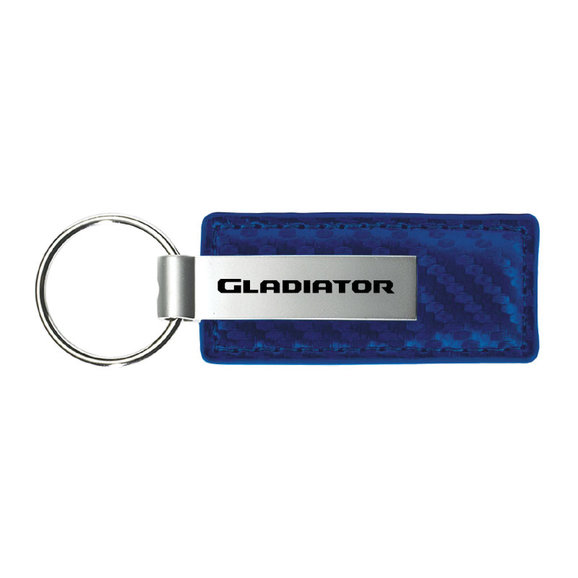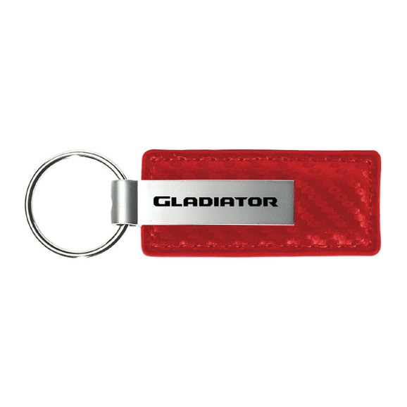 The Gladiator Carbon Fiber Leather Keychain from Au-Tomotive Gold prominently displays the Gladiator name across its horizontal rectangle design. Made from genuine leather, the satin metal is laser etched on both sides to produce crisp lettering that will withstand the test of time. Available in several different color choices for your desired look.