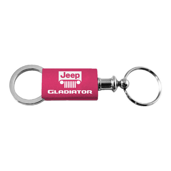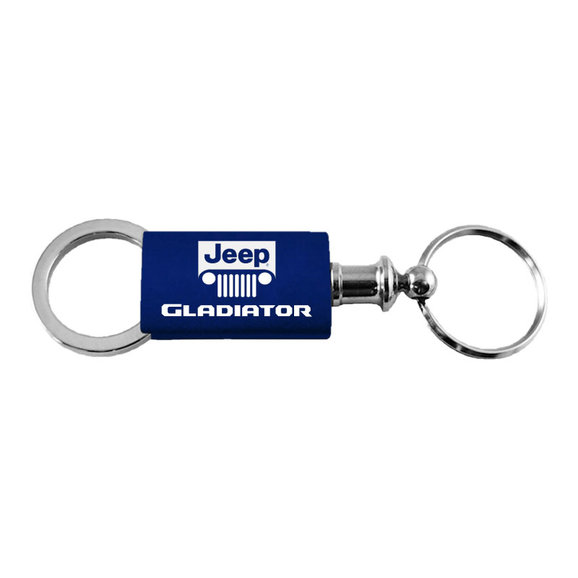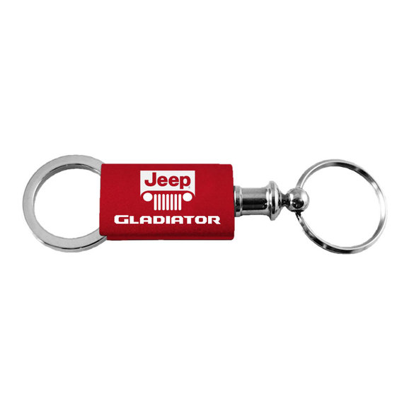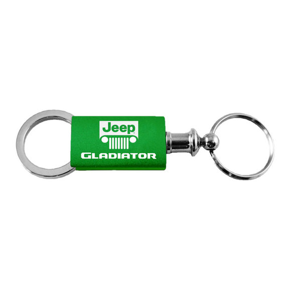 The Jeep Logo Gladiator Valet Keychain will be a great addition to your keyring. This anodized finished keychain features a colored inlet that prominently displays the iconic Jeep Grille Logo with Gladiator lettering. All Keychains are laser etched to produce crisp lettering and available in several color choices for the look you want.