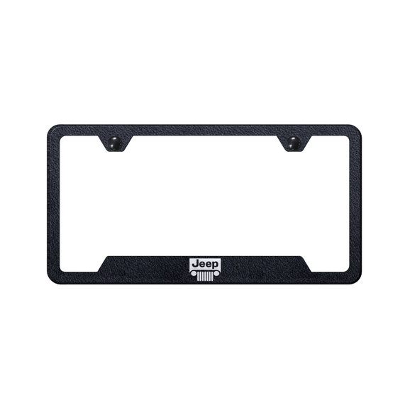 With a textured rugged black finish, this license plate frame from Automotive Gold features the iconic Jeep® grill logo that is laser-etched with precision. The notched lower corners won’t cover registration stickers where required. It comes with vehicle-specific hardware for installation and anti-theft hardware caps. Automotive Gold backs this Jeep® license plate frame with a lifetime warranty against flaws in materials or workmanship and is proudly made in the USA.