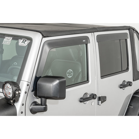 This AVS Ventvisor and Aeroskin Bundle Kit has a Rich Matte Black Finish that mimics stock fender flares as well as O.E. trim to give you that "from the factory" look you're after. Cabin comfort and hood protection all in one package for an easy way to create a great O.E. look for your JK.