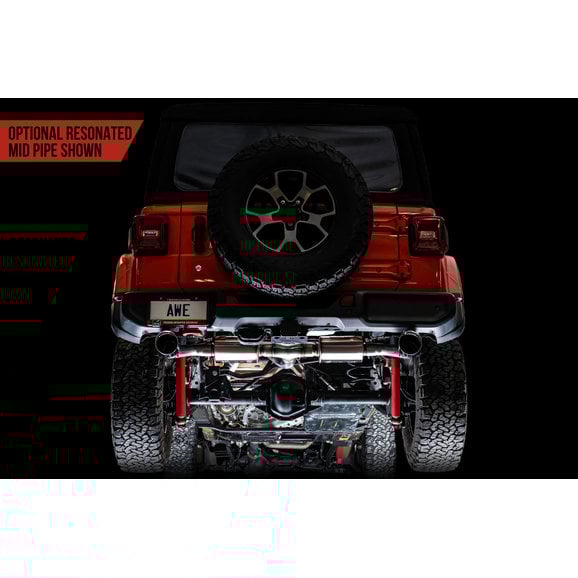 Quality, power, and the best sounding exhausts on the market are what AWE is known for. Get even more performance out of your Wrangler JL with the addition of a Tread Edition Axle-Back Exhaust from AWE. This Axle-Back system is manufactured using the highest quality CNC mandrel-bent T304L stainless steel. The Tread Edition exhaust is designed specifically to give the best sounding and highest performing exhaust on the street or on the trails. The Tread Edition Axle-Back features AWE’s straight-through design that produces aggressive tones the more you accelerate. The Tread Edition Axle-Back is Dyno tested to increase up to 5 HP while adding 10 ft-lbs. of torque at the wheels. Installation requires no drilling, cutting, or modifications to your Wrangler JL, which allows you to get back out there in no time! Fits both 3.6L & 2.0L engines. Backed by a lifetime warranty.