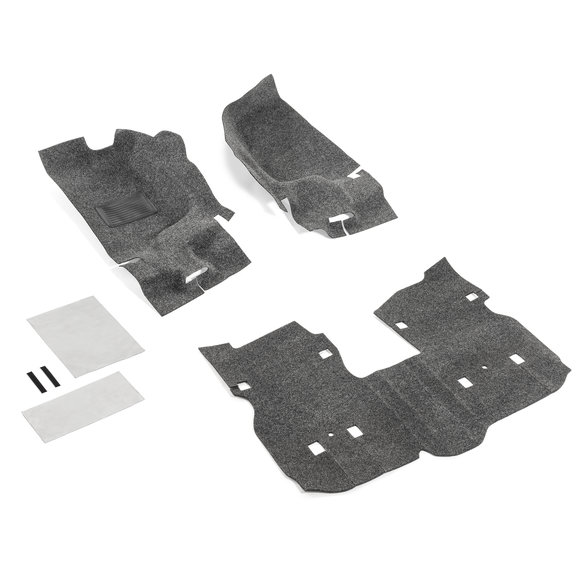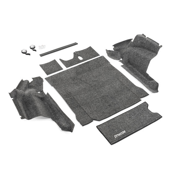 Easily replace a worn out or stained carpeting with the Premium Carpeted Front Floor & Rear Liner Kit from Bedrug. This complete set will replace the existing carpeting with a durable 1/4" thick polypropylene foam liner that looks and feels like a plush carpet. Includes the front driver & passenger floor sections, the under seat section for the front carpet, as well as the rear cargo area liners. Installation is simple with hook and loop fasteners, which makes for easy cleaning as well. Simply remove the liners and hose them down or power-wash for a thorough cleaning. The material is 100% waterproof and dries quickly. The thickness of the mats also insulates the cockpit area from heat and road noise. Made in the USA.