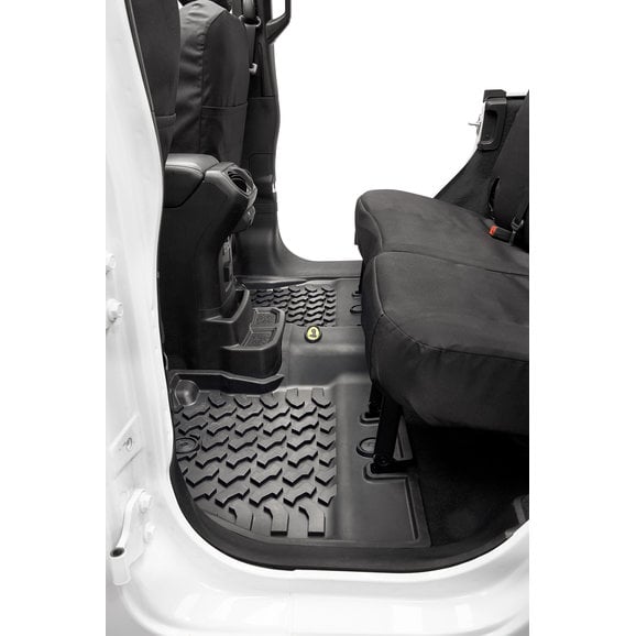 Give Your Wrangler JL Unlimited factory carpeting some added protection with the All Weather Floor Mats from Bestop. These mats are made from very durable TPE material, and are contoured to the Jeep for a precise fit. The 5/16" tall treads will give your feet a good gripping surface and the raised edge lip is designed to hold 40% more liquid and will channel mud or snow away from your feet. The underside of the mats feature carpet grabbing nibs will ensure they will stay in place and not move. Available in front pairs or front and rear footwell sets. Backed by a limited lifetime warranty.