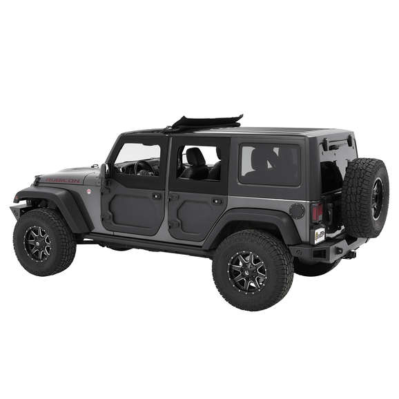 Bestop has created the first one-piece cast aluminum doors for the Jeep Wrangler JK. The Core Doors are designed to be a much more user-friendly door option than the bulky and somewhat heavy full steel doors. Each door is precision molded and specifically designed for the Wrangler JK 4 door vehicles. The included center panel can be easily removed to experience open air driving! The remote latch release is seamlessly integrated into the door for a sleek and updated look. The factory quality door check straps are designed to keep the doors from hitting the body when opening the doors. The exterior door handles are lockable for added security. Add a pair of the Twill Upper Doors and you will have a fully secured door. The Triple layer premium Twill material ensures superior durability and performance in any type of climate. The Twill upper doors are made to fit with either the Core Doors, or factory OEM lower doors. The windows easily zip down for more air flow in the Jeep. Complete bundle kits are available for upper & lower doors, or sold per pair.