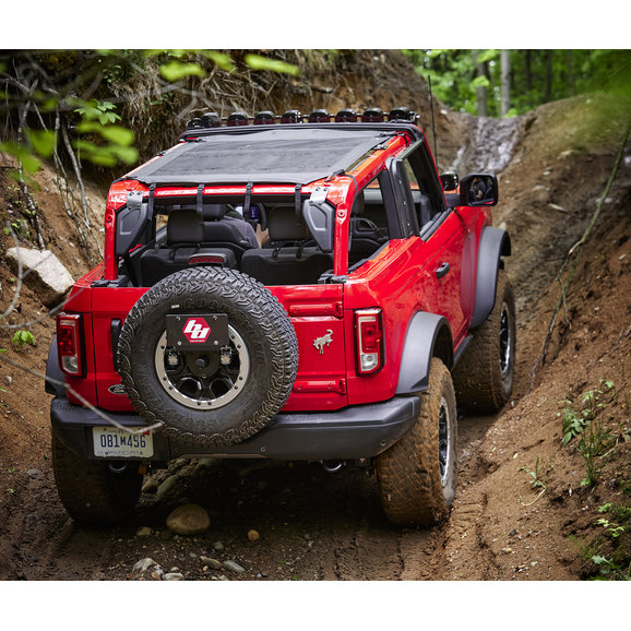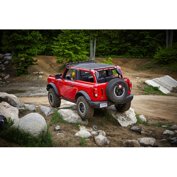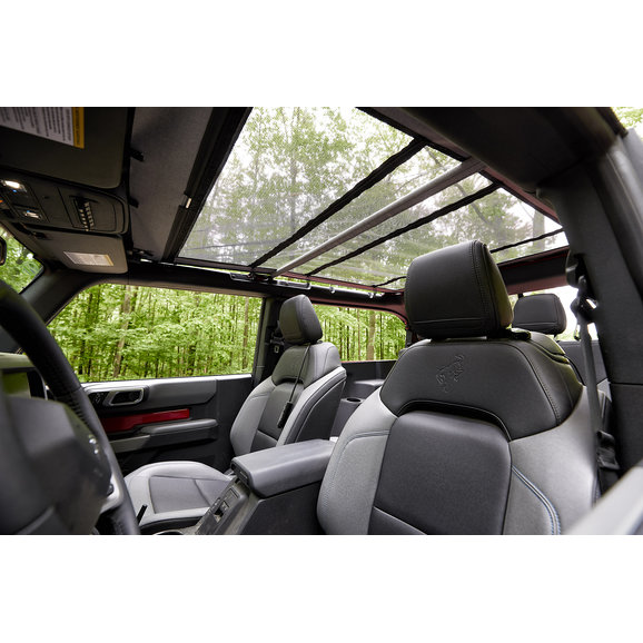 Bestop's Safari Sun Bikini Top utilizes innovative mesh material for cooler protection on sunny, warm days, and is exclusively designed for Ford Bronco. Easily attaches above the driver and passenger seats and can remain in place whether soft top is on or off the vehicle. New no-drill attachment uses simple hook & loop fasteners and J-Hook system so it does not require use of a windshield channel. Installs in just a few minutes with no drilling required. Features one-year warranty.