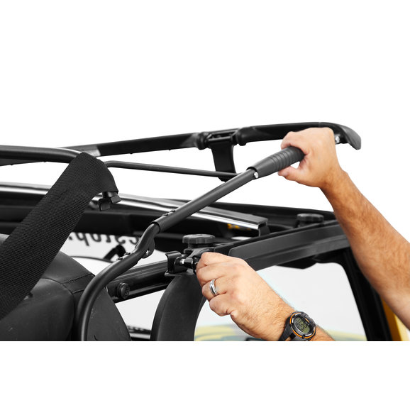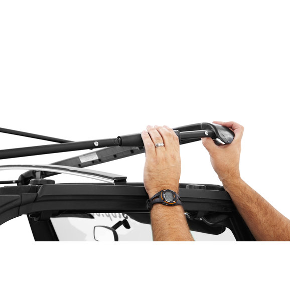 Whether you're converting your hardtop Wrangler to a soft top, or replacing your existing soft top, the NX is the finest 100% complete soft top solution. Kits include all soft top panels with zip out tinted windows, original factory style bow assembly, installation hardware and detailed installation instructions. Supertop NX kits also features original factory style door surrounds and a tailgate retainer bar. The unique flip back sunroof front section provides instant open air driving while the entire top can easily fold down onto the vehicle for the full open air experience. The custom quick release soft top bow knuckles allow complete top removal without the use of tools. The adjustable soft top Bow Mount Tensioning Plate and Top Arch Bar allow for adjustable tension ensuring a tight fit. The Supetop® NX Soft Top kits can be used with a combination of Bestop soft doors or the factory steel doors.