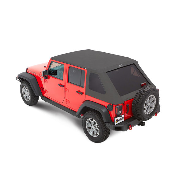 The Bestop JEEP Trektop Soft Top Provides that sleek, clean, fast-back look to your Jeep. As a fully enclosed top with the side and rear windows the Trektop provides the ultimate in protection from the elements while out on your adventures or running to the store. Remove the windows to allow you to experience that great feeling of being in the outdoors with the wind in your hair. The Trektop offers convenience with zippered pockets above the driver and passenger for the organization of small items. Zipper-less technology allows for an improved fit and easier installation. Use of the tailgate bar and clips allows for factory style opening of the tailgate. Display your passion by having a Jeep logo’d soft top with a mountain scene prominently shown high on the back in the center of the top.