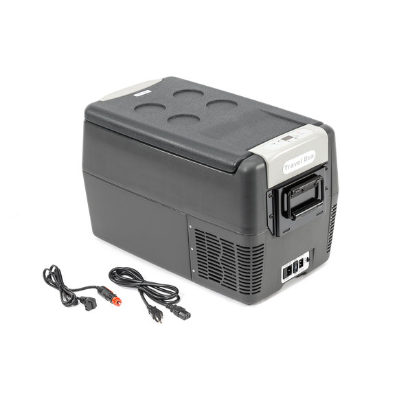Go Anywhere. Cool Anything. The new Black Forest Fridge/Freezer features a low profile and compact design with a composite case that is built to be lightweight and encase the most efficient SECOP compressor. Just plug it in, set the temperature to between 50°F to 0°F (10°C to -18°) and let the Black Forest Fridge/Freezer cool down with either Eco or Max settings. 12/24V DC or 115/230V AC Power adapters are included. Measures 24.5"L x 13.5"W x 14.5”H. Optional slider and mounting baseplate are available separately for 2 Door and 4 Door Wranglers.