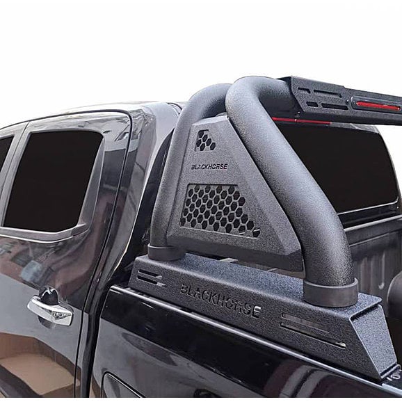 The Black Horse Off Road Classic Pro Roll Bar for Jeep Gladiator JT models gives a great sporty, classic look to your truck. The roll bar is tonneau cover compatible. The roll bar is made from textured black powder-coated three inch steel, round tubes. The third brake light is included and is pre-wired with power and ground. Auxiliary lighting can be mounted above the cab roofline and added heavy-duty tie-down points along with the rugged styling to complement the off-road functionality and recreational activities.