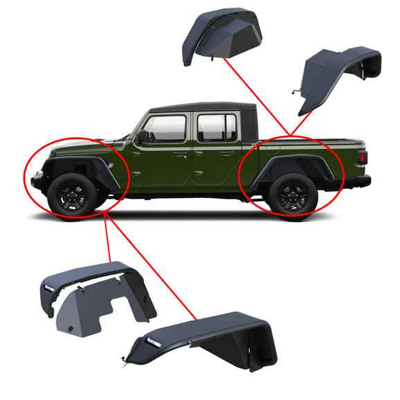 Black Horse Off Road TIFR20G Front & Rear Tubular Fender Flares w/Inner Fender Flare Liners for 20-26 Jeep Gladiator JT