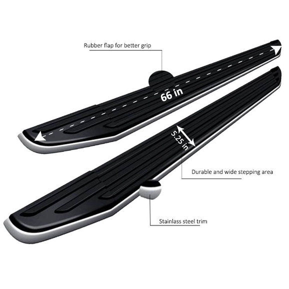 Weight Capacity: Running boards will hold hold up to 350lbs per side.