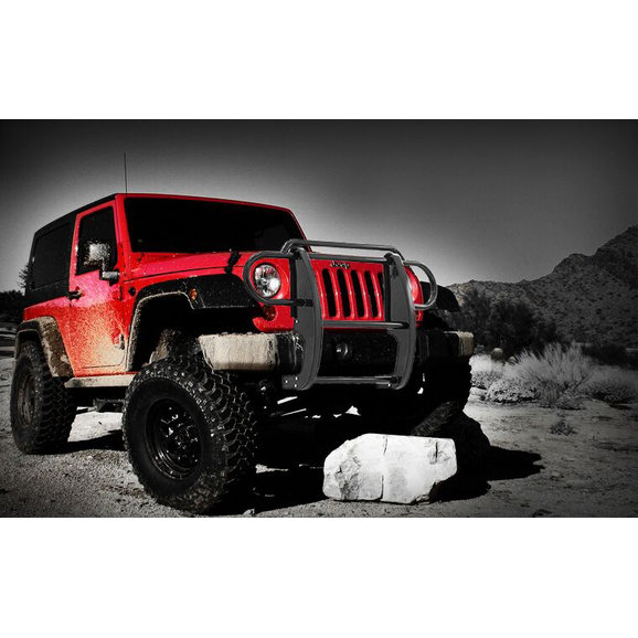 The Black Horse Off Road Grille Guard is a simple solution to add grille protection to your Wrangler JK 2-Door & Unlimited 4-Door without buying a new bumper. This Grille Guard is a direct bolt-on and attaches to the chassis of your Jeep without drilling. The Grille Guard is made from heavy-duty steel which is highly resistant to rust and corrosion. The robust construction of this Grille Guard will give your bumper and grille amazing protection. Made from 1 1/2" heavy wall tubing and has two pre drilled holes on the crossbar to accommodate auxiliary lights. Note: Will not work with Rubicon Model factory bumper.