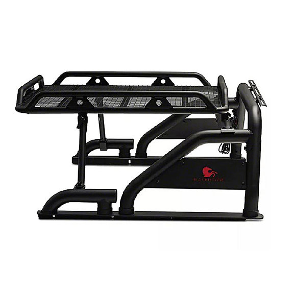 Note: Will not fit if hard or soft tonneau covers are installedThe Black Horse Off Road Warrior Roll Bar for Jeep Gladiator JT models gives a great sporty, adventurous look to your truck. The roll bar is made from black powder coat finish high-grade materials to add structural strength to protect you and your passengers in the event of a rollover. There is a quick-release mechanism to remove and install the basket for convenient storage. The 3-inch diameter mild steel cold-rolled tubing is designed to carry loads up to 400 lbs. This roll bar is rust-resistant with a powder-coated top-coat with an E-coat undercoat. Installation is a bolt-on, with no drilling. Included light brackets are designed to hold lights up to 50" in length (LED Bar). The rear brake light is also included.