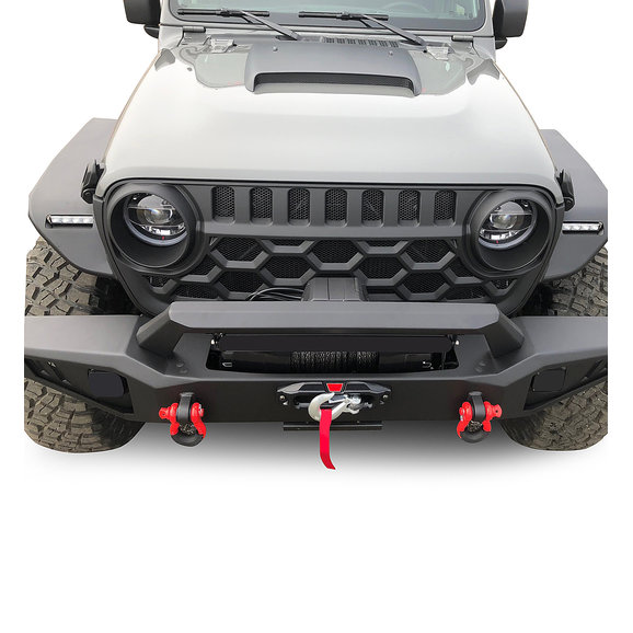 The Black Horse Off Road Armour Front Winch Bumper gives your Jeep Wrangler JL or Gladiator JT the ultimate front-end protection. The robust material is highly resistant to rust and corrosion for long-lasting durability. This bumper is engineered for protection whether on or off-road. Built for recovery and designed to have a winch installed on the integrated winch and fairlead mount. Reinforced built-in shackle mounts are ready to hit the trails with confidence. Built with style in mind, the outer ends are tapered for increased clearance and has vents to accentuate the appearance. This front bumper is bolt-on frame-mounted and has a no-drill installation.