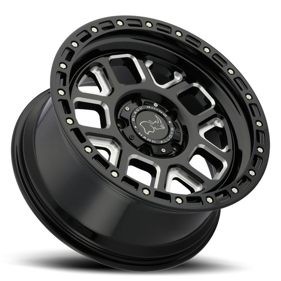 Two-Tone Finish: Alpine Wheels features an attractive Gloss Black paint with CNC milled accents. For additional contrast, the simulated beadlock ring also has silver hex bolt heads.