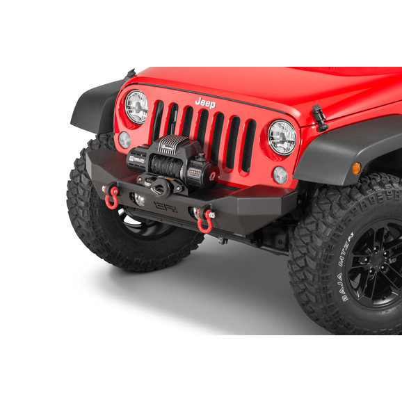 Features: The ability to mount up to a 12,000lbs winch to help in recovery situation on the trails. Two welded D-Ring mounts for extra recovery point on your Jeep. Has the ability to add optional grill guard and skid plate.