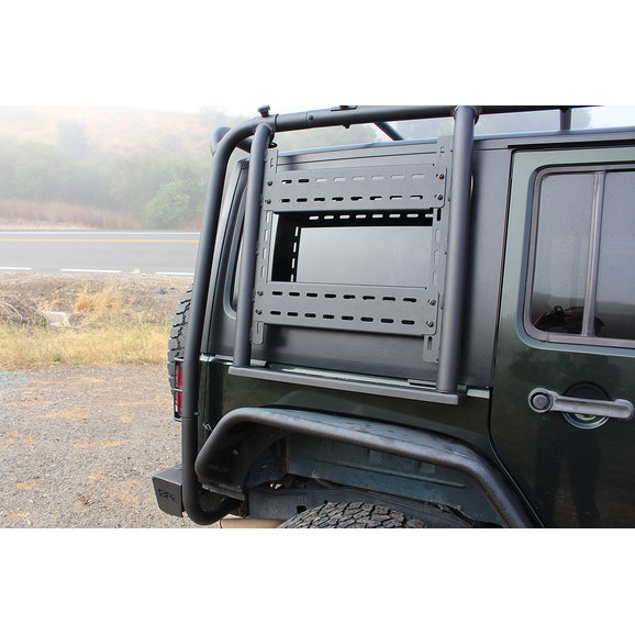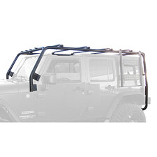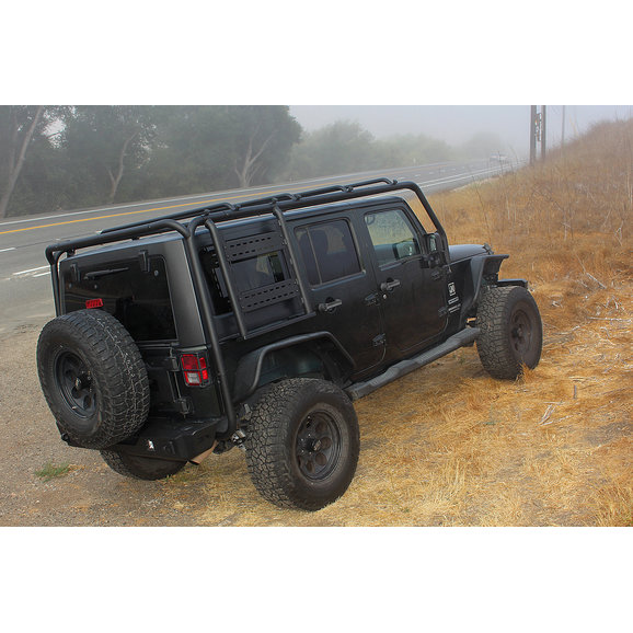 Body Armor 4X4's Gen 2 Cargo Roof Rack Accessory Mount for Jeep Wrangler JK 2-Door & Unlimited JK 4-Door is made from 2" .120 wall steel tube and features a durable textured black powder coat finish. You are able to mount Rotopax containers, Hi-Lift jack, quick fist mounts, molle bags, and other accessories to both driver and passenger sides. An Incorporated step pad (250lb load limit) allows easy access to the roof of your Jeep. Sold in pairs.