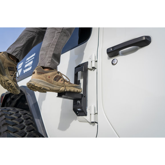 No Drill Hinge Mounted: This Hinge Step mounts to the existing door hinges on the body of your Jeep.
