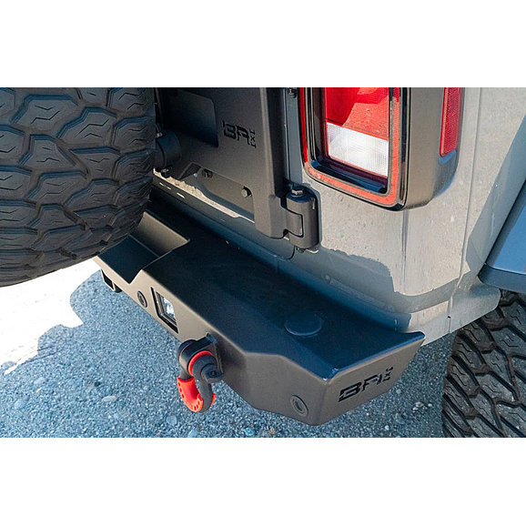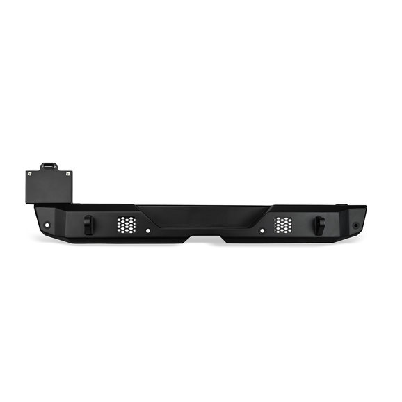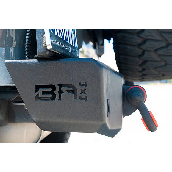 The Body Armor Rear Bumper for Jeep Wrangler JL has 3/16 steel plate construction and a two-stage black powder coat heavy texture finish. The compact design fits nice and tight and has a high clearance design for better approach and departure angles. This bumper accommodates an OE hitch and has mounts for 2" Led cube lights. Integrated shackle recovery mounts are welded into the bumper to help with your recovery needs. An optional tire carrier is sold separately.