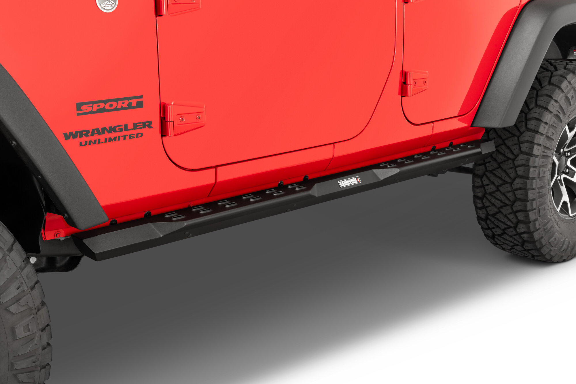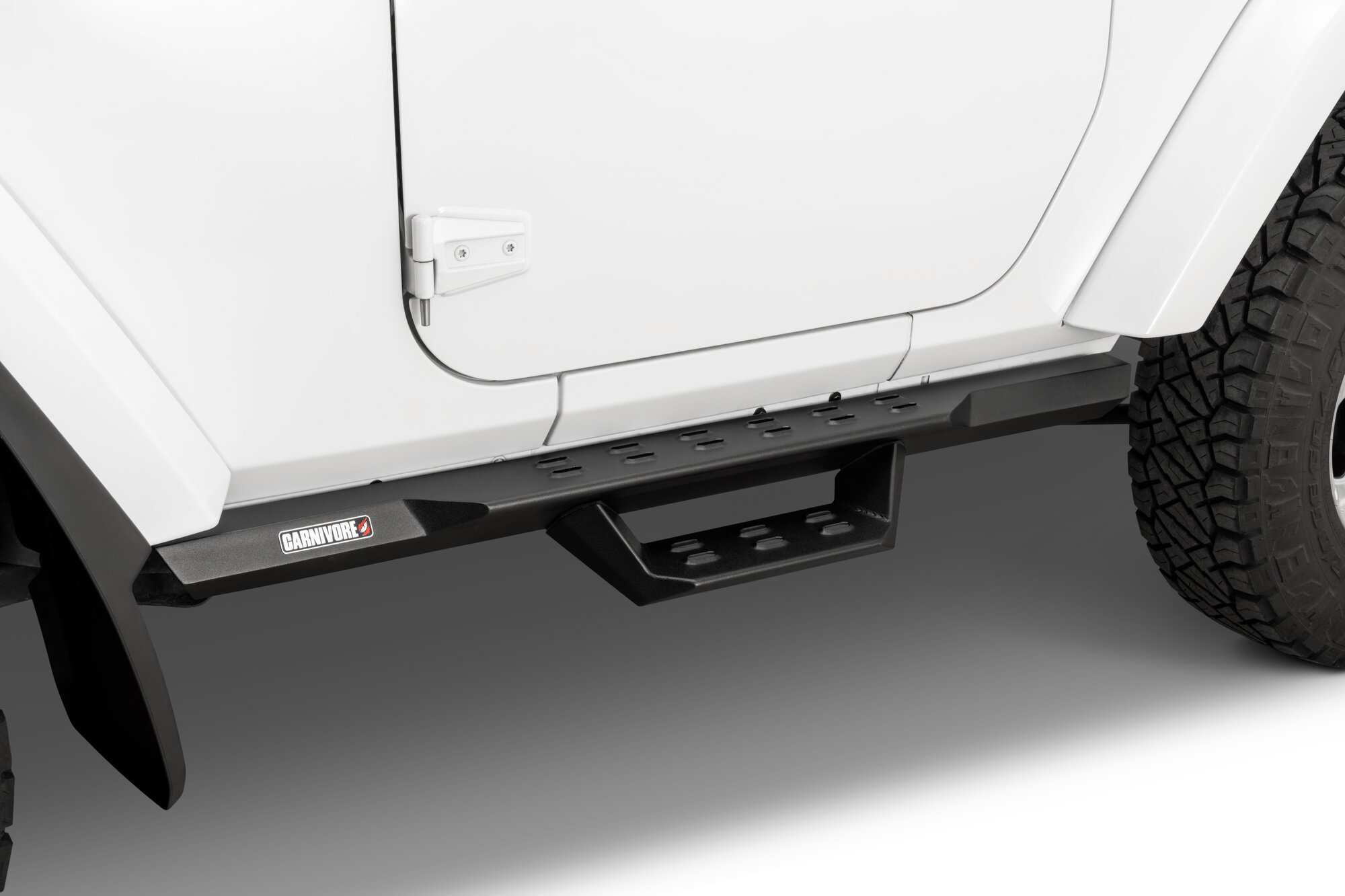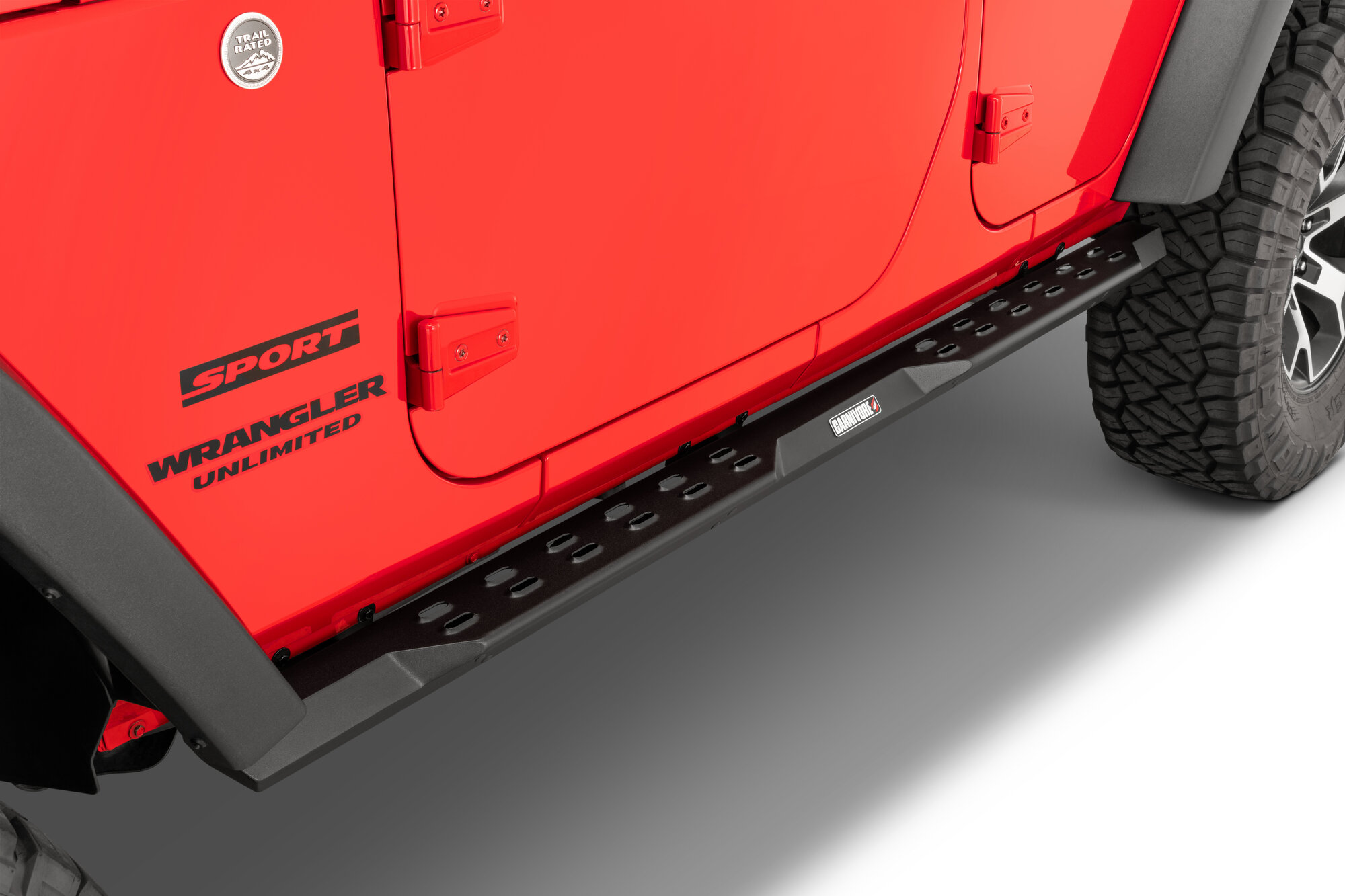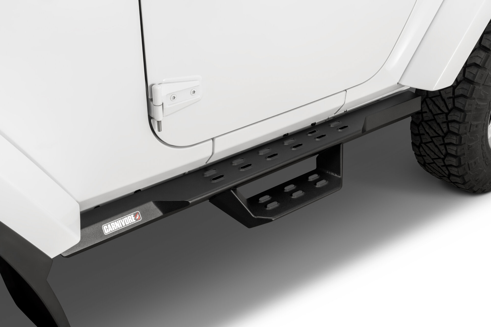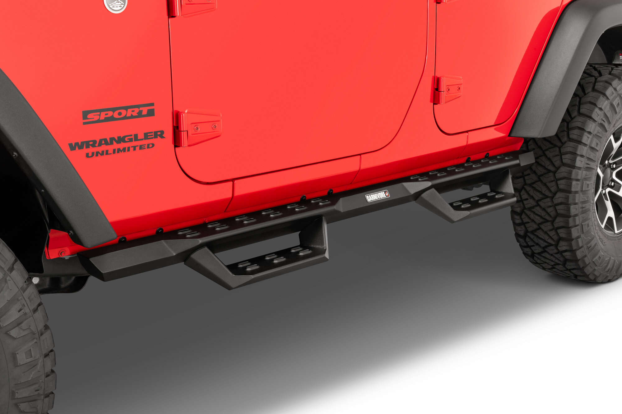 Body-Hugging Design: Aggressive Carnivore drop steps follow the factory body lines closely and sit high along the rocker panels for a clean, integrated appearance.
