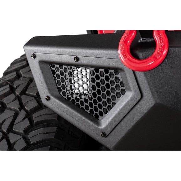 The heavy-duty steel Carnivore Bumpers look fabulous with a durable textured powder coat painted steel that is precision cut and robotically welded for a quality, strong finish. It is a direct bolt-on installation that doesn’t require drilling or modification. The unique styling of the mesh stone guards provides a great way to personalize your bumper. These removable mesh guards can be repainted to match your accent color with just a little preparation. On the mid-width and full-size bumpers, there are mounts for lighting behind the mesh stone guards to create even further personalization.