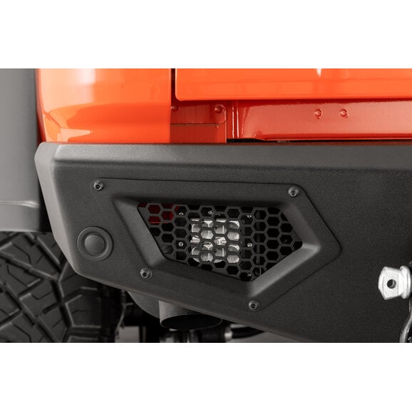 Lighting Brackets: Rear backup light mount brackets are cleverly concealed and allow 3" auxiliary lights behind stylized mesh stone guards, providing an aggressive off-road appearance.