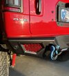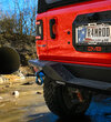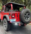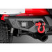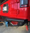 The Carnivore Rear Bumper for Jeep Wrangler JL 2-Door & JL Unlimited 4-Door is built to protect your vehicle from the toughest trail conditions with its unique styling that is sure to turn heads. The heavy-duty steel Carnivore Rear Bumpers are laser-cut from 5mm thick carbon steel plate and 6mm thick frame mount brackets and robotically welded for precision and ultimate strength. Protect the rear of your Jeep with a bumper that measures 65 inches wide. The rear bumper accommodates the factory rear backup sensors if equipped and up to a 35” tall spare using the factory spare tire mount. The rear backup light mount brackets allow you to cleverly conceal 3" auxiliary lights behind the stylized mesh stone guards giving an aggressive off-road look. (Lights sold separately). The bumper is designed to work with factory and aftermarket tow hitches and includes a license plate mounting bracket with led lights and a plug-and-play wiring harness. The 1-inch thick D-Ring clevis tabs provide two functional recovery points and the black textured powder coating provides lasting durability. Enjoy the easy direct bolt-on installation that doesn’t require any drilling or modification.