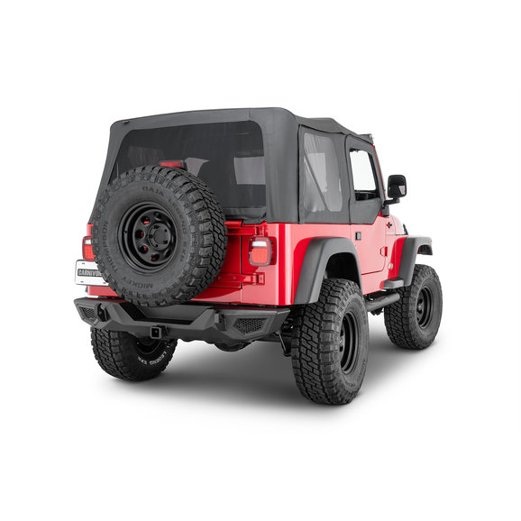 The Carnivore Rear Bumper for Jeep Wrangler YJ, TJ & Unlimited TJ/LJ is built to protect your vehicle from the toughest trail conditions with a unique styling that's sure to turn heads. The heavy-duty steel Carnivore Rear Bumpers are laser-cut from 5mm thick carbon steel plate with 6mm thick frame mount brackets that are robotically welded for precision and ultimate strength. Measuring 60" wide, this bumper is ready to protect the rear of your Jeep. The rear bumper accommodates up to a 37” tall spare using the factory spare tire mount.