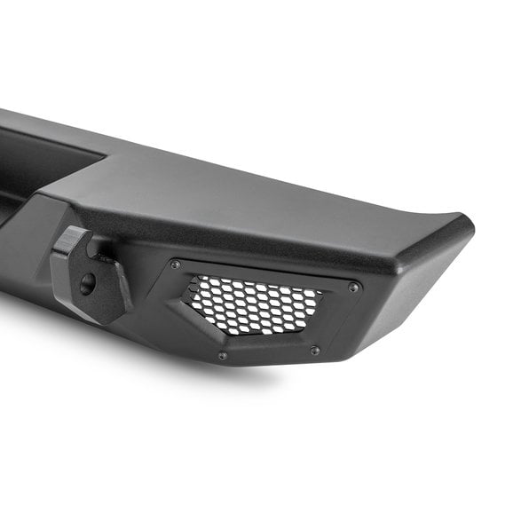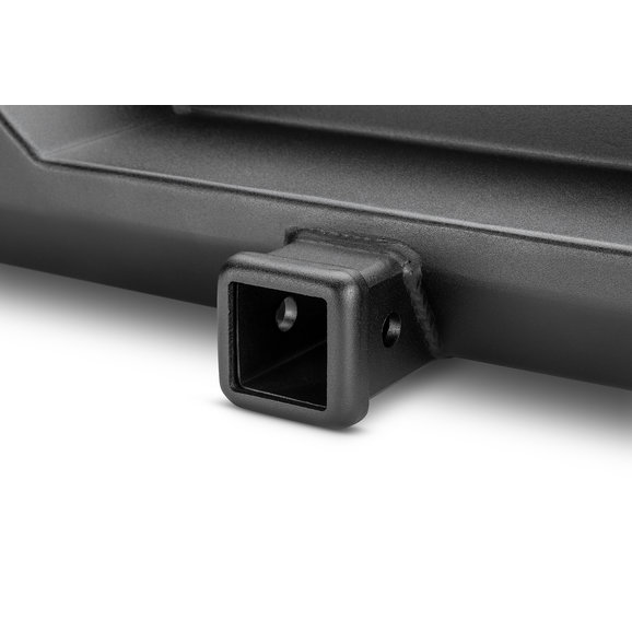 The rear backup light mount brackets allow you to cleverly conceal 3" auxiliary cube lights behind the stylized stone guards for an aggressive off-road look. (Lights sold separately.) The bumper includes an integrated non-tow rated 2” receiver for accessories racks, while the 1" thick D-Ring clevis tabs provide two functional recovery points for when the trail gets rough. A black textured powder coating offers protection against the elements and corrosion. Installation is simple and straightforward with a bolt-on process that doesn't require any drilling or modification.