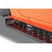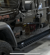 Carnivore's Side Steps for the Jeep Gladiator JT provides excellent functionality, strength, performance and appearance. These aggressively styled protective side steps measure 90 inches long and 6.25 inches wide, and offer a spacious landing area that makes entering or exiting the Jeep a pleasure — especially for those who've added larger tires or a suspension lift. Additionally, these steps provide crucial access to remove hardtop Freedom Panels, recline or remove a soft top, or when loading/unloading cargo rack items. Engineered with a unique dimple die-tread design stamped into the 2mm thick carbon steel running boards to provide superior traction in all weather conditions. Includes thick, durable steel brackets that directly attach to body mounting locations with no drilling or welding. Black textured powder coating adds long-lasting durability and an eye-pleasing appearance, while exclusive stone guards neatly match Carnivore front and rear bumpers for a uniform look. Features detailed installation instructions and a three-year warranty.