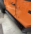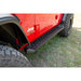 Carnivore's Side Steps for the Jeep Wrangler JL is the perfect blend of functionality, strength, performance, and appearance. These aggressively-styled protective side steps measure 72 inches long (4-Door), 54 inches long (2-door) and 6.25 inches wide and offer a spacious landing area that makes entering or exiting the Jeep a breeze — especially for those who add larger tires or a suspension lift. Additionally, these steps provide easier access to remove hardtop Freedom Panels, recline or remove a soft top, or when loading/unloading items for a cargo rack. Engineered with a unique dimple die-tread design that is stamped into the 2mm thick carbon steel running boards to provide superior traction in all weather conditions. Includes 5mm thick steel brackets that directly attach to body mounting locations with no drilling or welding required. Black textured powder coating adds long-lasting durability and an eye-pleasing appearance, while exclusive stone guards at each end of the steps neatly match Carnivore front and rear bumpers for a uniform look. Features detailed installation instructions and a three-year warranty.
