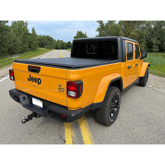 Whether you utilize your Jeep Gladiator JT to hit the trails, visit the job site, or just as a daily commuter, this CAT® Soft, Vinyl, Tri-Fold Tonneau Cover with Rigid Molle Panels is an ideal accessory. The durable, job-site ready frame is made from powder-coated, lightweight aluminum - sure to stand up to years of use. Powder-coated aluminum hex grid Molle panels allow you to store gear that's more easily accessible when you need it. A heavy-duty cam latch is only accessible when your Jeep's tailgate is open, providing increased security while also being quick and easy to use. The UV-protected, durable vinyl coated tarp is weather-resistant, designed to stand up to dust and water while also providing tear-resistance and reducing stretching. Backed by a Limited Lifetime Warranty.