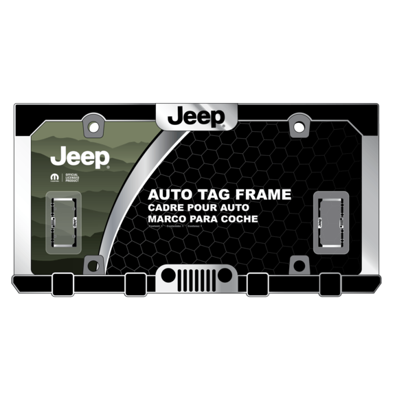 Show Your Jeep pride with this hard plastic & Chrome finished license plate frame. Installs easily using factory hardware to stock license plate locations.