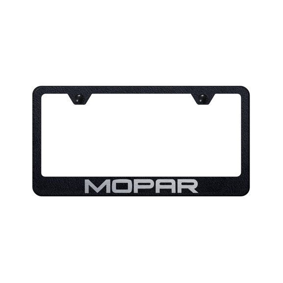 This license plate frame from Automotive Gold features a clean and crisp laser-etched Mopar® name in factory font and textured rugged black finish. The classic design incorporates a wide bottom that extends the entire width of the frame. It comes with vehicle-specific hardware for installation and anti-theft hardware caps. Automotive Gold backs this Jeep® license plate frame with a lifetime warranty against flaws in materials or workmanship and is proudly made in the USA.
