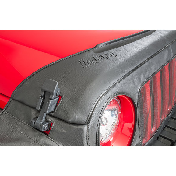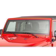 Our multi-piece Bras are the finest you can buy. Compare the fit with any other Bra on the market and you'll want one. Manufactured from high-grade soft-lined vinyl for maximum protection. Built-in Bug Screen helps keep you radiator free of debris. There is no need to remove the Bra to open the hood. New easy-to-install design cuts installation time in half! The new Deflector Bra covers the hood's front edge. Perfect for leaving a chrome grille exposed to see. All bras are manufactured in weather-resistant black vinyl only. Will not fit the Sahara or Rubicon.