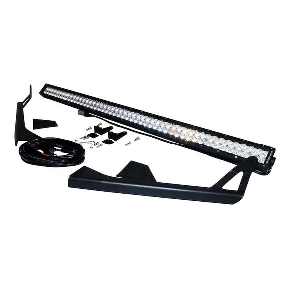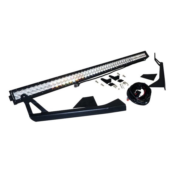 Design: Dual row 50" LED light bar that mounts to windshield hinge brackets. The housing is made of die cast aluminum that has cooling fins and has a matte black anodized finish. Comes with a universal wiring harness.