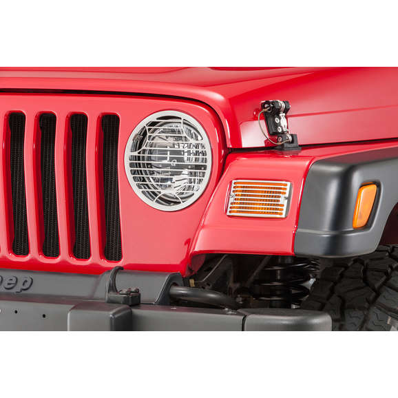 The Crown Automotive Billet Light Guard Set is perfect for protecting and classing up your Wrangler TJ. These guards are made from single aluminum or stainless billet, no welding or braising to break. Polished 304 stainless steel and black painted aluminum finishes are available to match other accessories on your Jeep. Installs easily, reusing original lighting hardware. Protect your lights from trail and road hazards and ride with some style too.