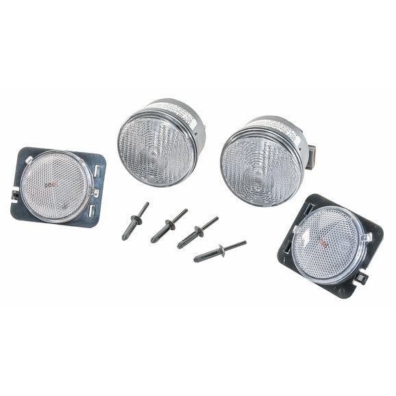 The Crown Automotive Clear Corner & Turn Signal Lens Kit is a simple at home upgrade for your JK Wrangler. Easily plugging into factory sockets and installing into original locations, there is no cutting or splicing required. To stay DOT legal, use of included amber bulbs is required. Set yourself apart from the other Jeeps on the trail with these attractive upgrades.