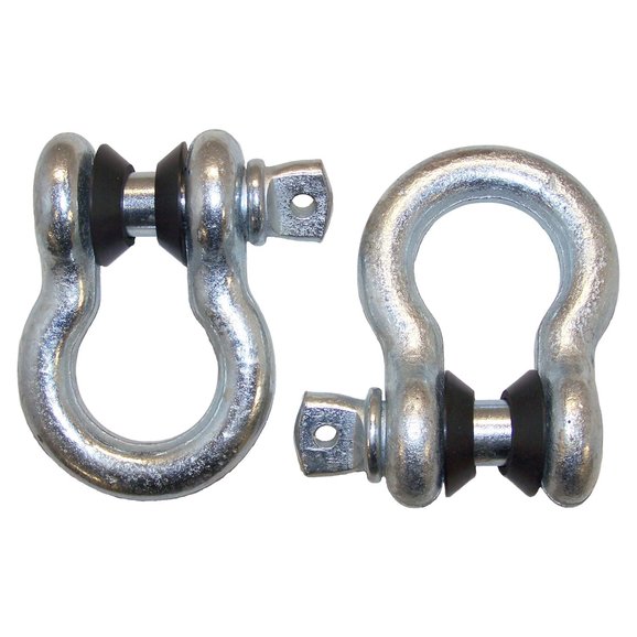 Form or function, this 3/4" D-Ring Pair with Anti-Rattle Bushings from Crown Automotive fit bumpers with 7/8" d-ring shanks. With a 9,600 working load limit for each shackle, you can use these as recovery points to get yourself out of a jam, or use as tie downs for your overhead gear. Included are two sets of tapered bushings that keep the d-ring centered on the mount and prevent the side to side movement that can damage paint and powder coat.