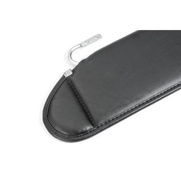 When years of the sun damage has destroyed your YJ Wrangler sun visors, you can easily replace them with The Crown Automotive Sun Visor Set in Black. These black vinyl, padded visors have adjustable brackets that can be extended on collapsed to conform to the original mounting holes on your windshield frame, keeping you from drilling. These new visors install with the use of the original mounting screws