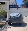 The Crown Automotive Triple Layer Vehicle Cover is the solution for the Jeep JK that needs a little protection while it is stored. The Breathable 3-layer fabric allows water to pass through in both directions, so you won't see that hazy spotting from trapped moisture when you remove the cover. This cover is designed to fit over the cab when the factory hardtop is installed or a soft top is installed and closed. Not intended to protect your Jeep in the case of rain, this cover is not waterproof.