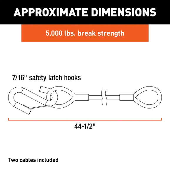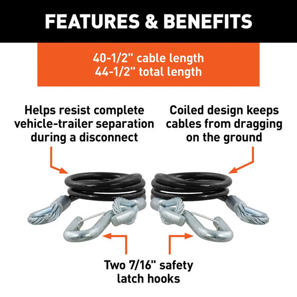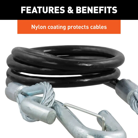 Designed for both convenience and peace of mind, these safety cables come equipped with 7/16-inch snap hooks featuring spring-loaded levers for secure attachment. Whether you're hauling a boat, camper, or utility trailer, the CURT 80151 cables ensure a reliable connection between your vehicle and trailer. Plus, the sleek black and silver finish adds a professional touch to your towing setup, all backed by CURT’s limited lifetime warranty.