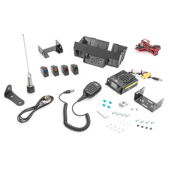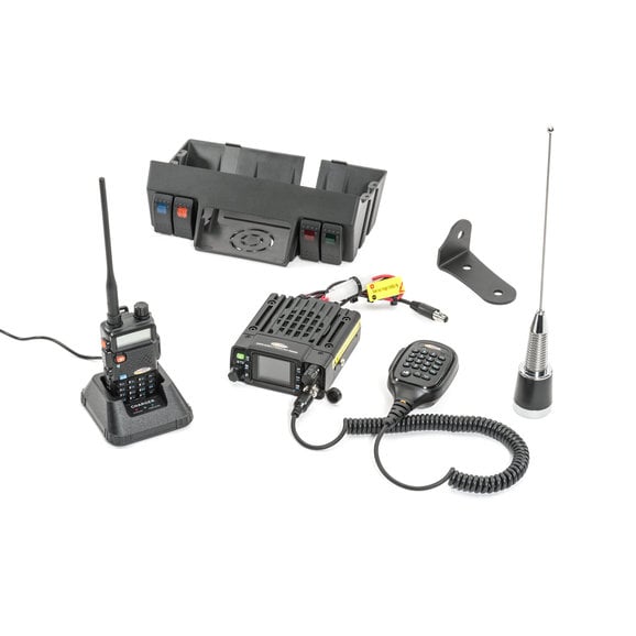 Mounted just above the rear-view mirror, the Daystar GMRS Radio with Upper Windshield Mount and Switches for Jeep Wrangler JK gives you quick and easy communication and four rocker switches for additional accessories. Reach up to 13 miles with the 25-watt GMRS (General Mobile Radio Service) 2-way radio and high output dual band antenna. Listen in on designated channels for weather and emergency information or even your favorite off-road events. Up to four circuits can be added with the wiring hidden away. Access to everything you need right from the driver seat. Comes in your choice of without handheld or with handheld capable of hearing clear instruction from your spotter using the rechargeable handheld radio from up to 3 miles away.