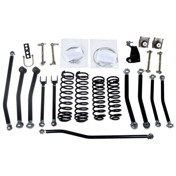 - Included Parts: Coil Springs, Extended Brake Lines, Front Sway Bar, Front Upper Control Arms, Hardware, Rear Lower Control Arms, Rear Track Bar Bracket, Rear Upper Control Arms, Sway Bar Endlinks