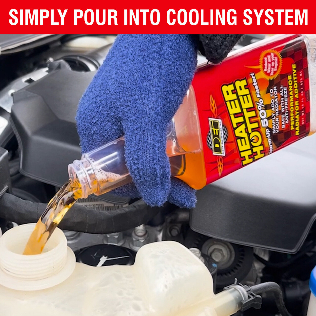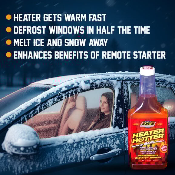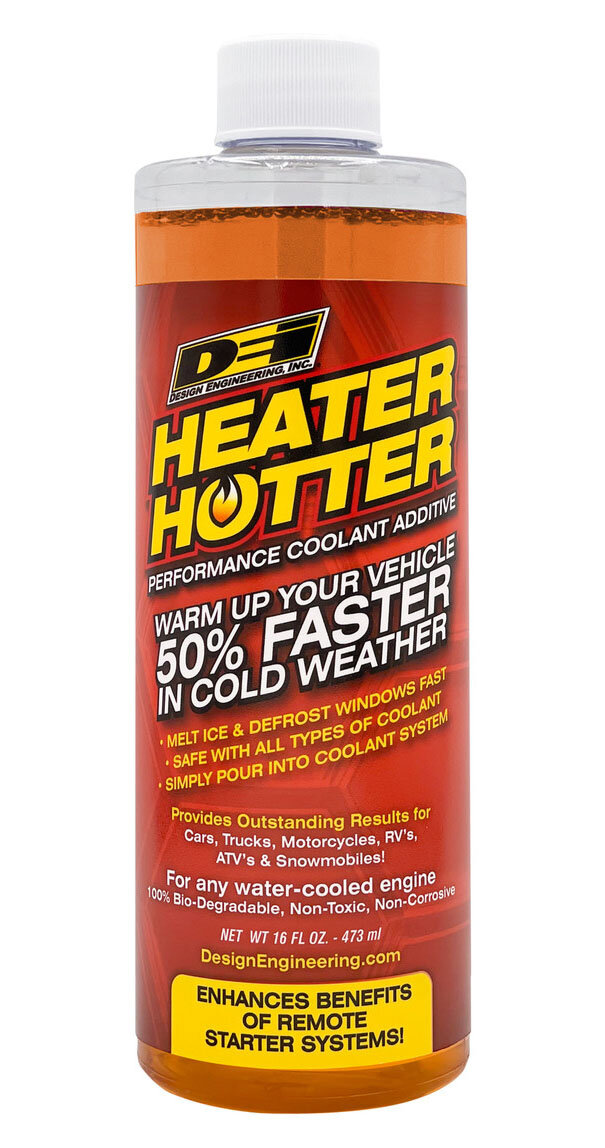 The Design Engineering Heater Hotter is a performance coolant additive engineered to solve the common wintertime issue of slow cabin heat and delayed defrosting. Using a specialty formula, Heater Hotter accelerates heat transfer from your engine to the cooling system, enabling your vehicle’s heater and defroster to warm up to 50% faster, even in sub-zero temperatures. It’s a universal, 16-oz pour-in treatment that’s compatible with all types of antifreeze and works with aluminum radiators. Whether you're starting up after a freezing night or trying to clear icy windows quickly, Heater Hotter helps your HVAC system become effective sooner, reducing engine wear caused by prolonged cold idling and improving comfort immediately.