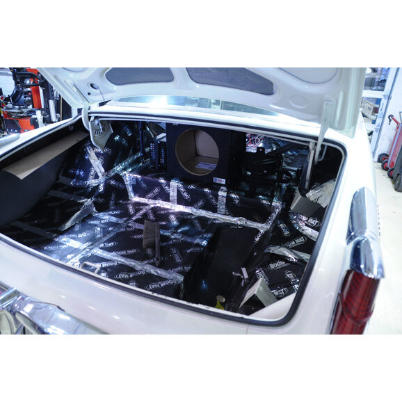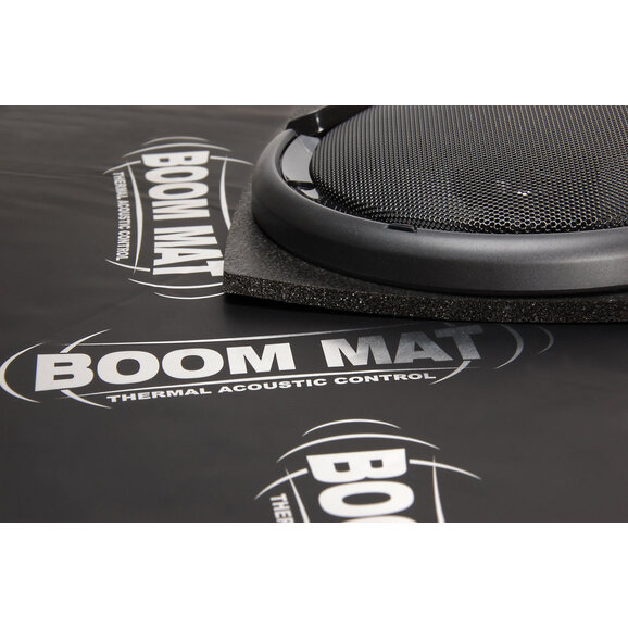 Installation is straightforward: just remove the speaker, apply the Boom Mat to the mounting surface, and reinstall the speaker. The material is flexible enough to conform to irregular surfaces and is unaffected by extreme temperatures, making it ideal for use in a variety of environments. It works equally well on steel, fiberglass, or plastic, and can be trimmed to fit any application. With its peel-and-stick design, the Speaker Performance Kit is a no-fuss solution for eliminating acoustic issues and enhancing your vehicle’s sound system.