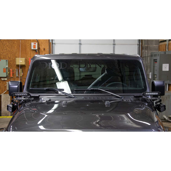 Increase your nighttime trail vision with this Diode Dynamics Cowl Mounted LED Light Bar Kit for Jeep Wrangler JL and Gladiator JT. This kit includes two SS6 Stage Series 6" LED Light Bars which throw 1400 measured lumens (2280 Raw Lumens) down the trail. The included mounting brackets made from heavy-duty steel and are covered in a durable powder coat finish. These brackets have multiple mounting locations to utilize a variety of light styles and options. Also includes OEM-style, automotive-grade hardware which is designed especially for this kit. Bolt-on application which utilizes the factory mounting locations. A wiring harness and OEM Auxiliary Switch Dual-Output Wiring Harness are included so you have all you need to install this kit when it arrives. The switch allows you to control the lighting through your factory switch location! If you don't have this from the factory a separate wiring harness and switch are also included. Backed by a 3-Year Limited Warranty.